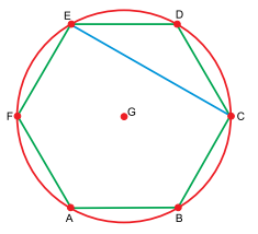 A figura apresenta um hexágono regular inscrito em uma circunferência de centro G e diâmetro igual a 20 centímetros.